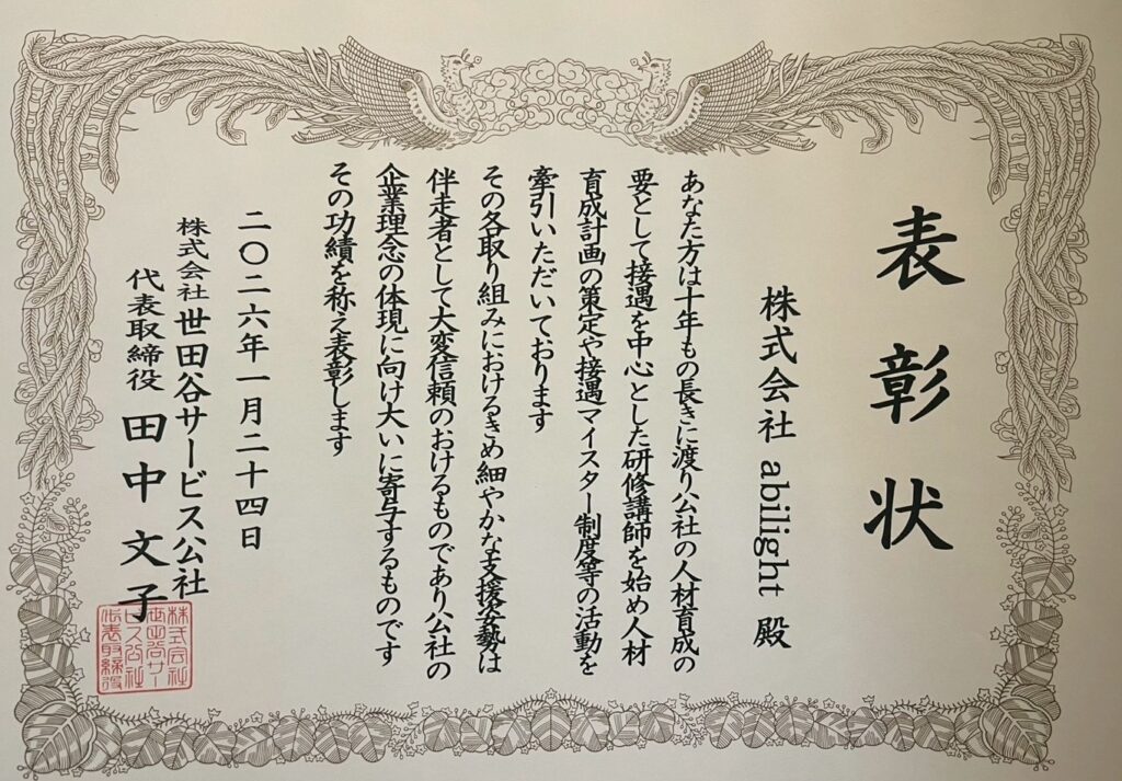このたび、当社が約10年間にわたり人材育成・人事制度づくりを支援してきた企業様より、長年の取り組みに対する表彰をいただきました。